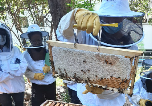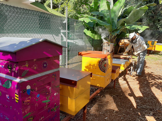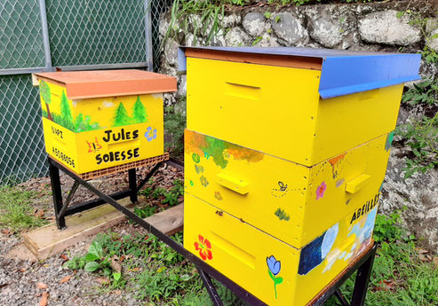 Les écoles primaires peuvent parrainer les abeilles de notre rucher pédagogique à St Paul, décorer leur ruche, suivre l'évolution de leur colonie, venir rencontrer leurs abeilles sur notre site et déguster le miel de leurs petites protégées.